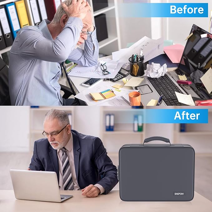 - Large-capacity(15.1"x11.2"x4.3"): Compared with other bags,our fireproof file bag adopts a multi-layer design that can meet all your storage needs. These include 13 accordion Pockets with labels(each expanding to 1.2 inches),8 passport mesh bags, 16 card slots, 4 U Disk pockets, 7 folder layers and one main pocket with a large space. It can store your important documents,money,passport,U Disk,cards,laptop,certificates in a safe and orderly way. Perfect for daily file filing and storage