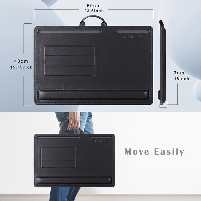 - Lightweight and Portable: Lap desk with mouse pad has a large surface size, but its thickness is only 1.2" (3cm) at its thinnest, and weight is only 3.3 lbs (1.5kg), making it lightweight on your lap! Lap desk has an handle that makes it move to the sofa, bed, coffee table, outdoors, home, office, for car, travel.