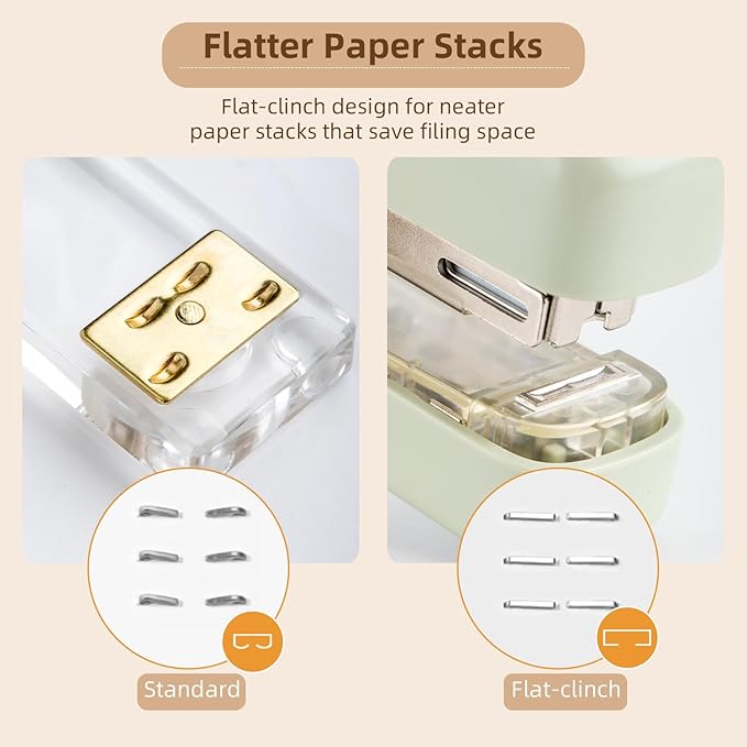 - Flat Clinch Design-Flat clinch design for flatter and neater paper stacks.