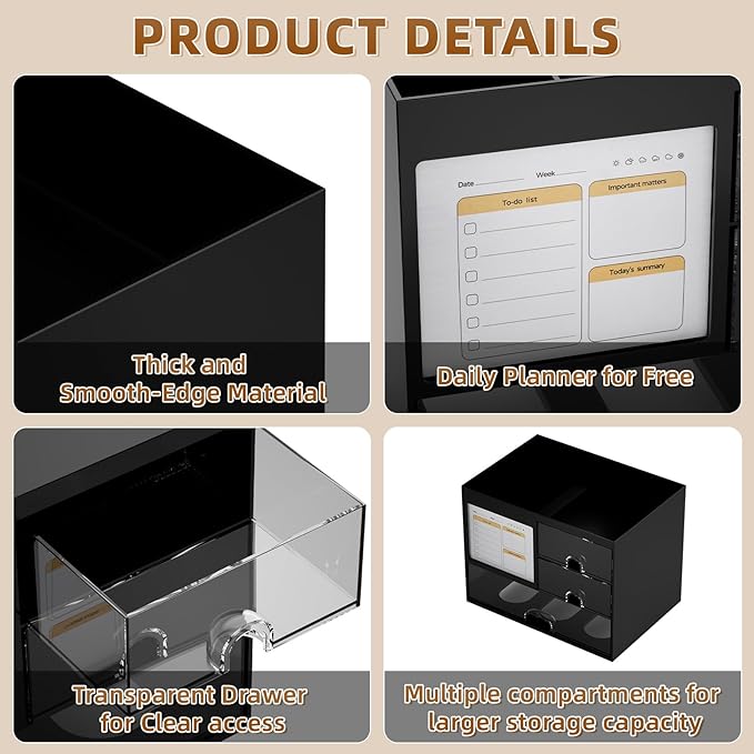 - 【Daily Memo for Free】This humanized desktop storage box is not only perfect for storing your desktop stationery but also great for doing your daily schedule. In particular, the daily planner is placed in the most visible place on the desktop, which can serve as a more prominent reminder and help you work effectively