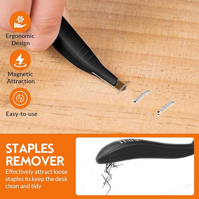 - Magnetic Staple Remover - Top magnetic handle Attract loose staples effectively, the staple can be quickly disposed, which will work be easier