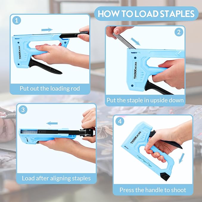 THINKWORK Light Duty Staple Gun - Upholstery Staple Gun for Wood with 1600pcs JT21 Staples 1/4", 5/16", 3/8" and Staple Remover, Fabric Stapler Gun for Crafts, Home Use, Wall, DIY, Lights Decora, Blue