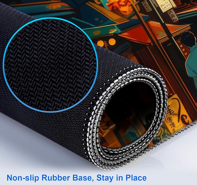 - Non-Slip Natural Rubber Base: This extended large mouse pad is soft and thick 3 mm/0.12 inches, the base is made of high quality natural rubber, which is harmless to human health. There will be no unpleasant smell. The mouse pad is designed with dense textured rubber, which can firmly grasp your desktop, avoid random movement, and provide stable operation for your mouse/keyboard.