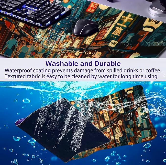 Cute Japanese Street Desk Mat, Anime Tokyo Street Night Scene Large Mouse Mat XXL, Computer Desk Mat 35.4 x 15.7 x 0.12 Inches