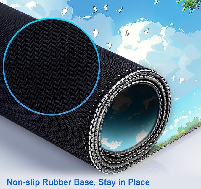 - Non-Slip Natural Rubber Base: This extended large mouse pad is soft and thick 3 mm/0.12 inches, the base is made of high quality natural rubber, which is harmless to human health. There will be no unpleasant smell. The mouse pad is designed with dense textured rubber, which can firmly grasp your desktop, avoid random movement, and provide stable operation for your mouse/keyboard.