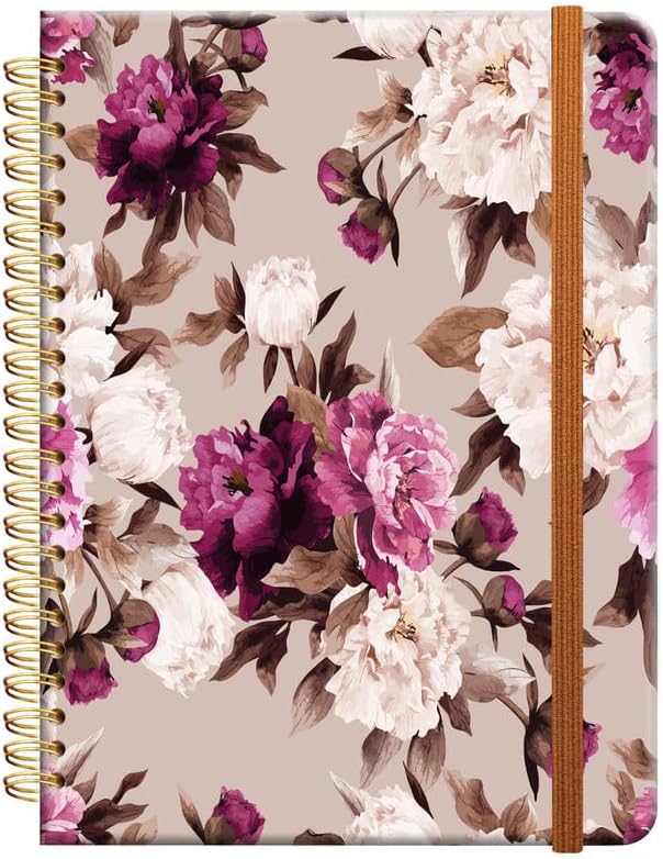 Ruled Spiral Writing Notebook,A5 Hardcover Lined College Journal for Women Girl,Strong Twin-Wire Binding with Premium Paper,8.4" X 6",Perfect for School,Office(Watercolor Pink Purple Floral)