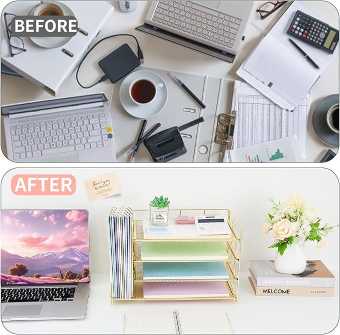 - 【Keep your desk clean】This space-saving paper organizer is the ideal solution for keeping your desk tidy and productive. Whether in an office, college dorm, or school classroom, it’s perfect for anyone needing efficient desk organization or classroom supplies