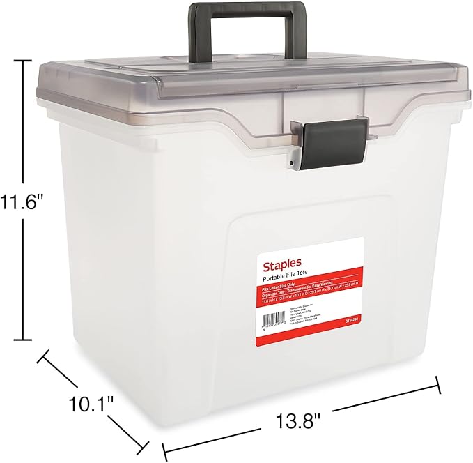 STAPLES Portable File Tote, Letter Size, Clear (ST58298)