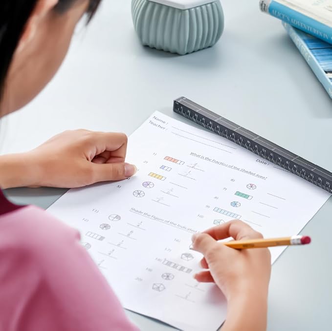 MeasureMate Learning Ruler, Four-Sided Math Tool for Students, Teaching Number Lines, Fraction Line, with Metric and Imperial, Black, 2-Pack