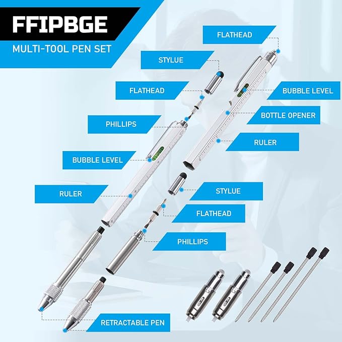 - Ideal for Multiple Scenarios: Whether you’re at the office, on a construction site, or out camping, this multitool pen set has you covered. With essential tools in one compact design, it is perfect for various tasks, from writing to fixing and measuring