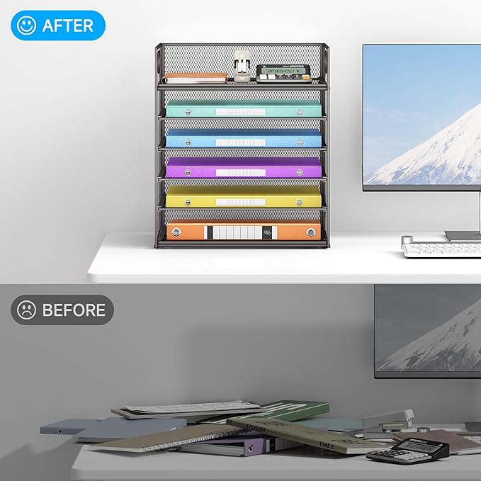 - 【Premium Material】The desk organizers and accessories is made of lightweight durable metal mesh and reinforced with a solid steel frame that makes it have long-lasting strength and reliable performance.
