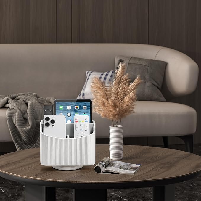 - 360° Rotating Remote Control Holder - Effortlessly access items from any angle with the smooth 360-degree rotating base, perfect for desk, nightstand, coffee table, end table, and bedside table