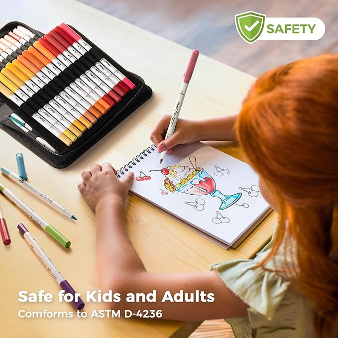 - BRUSH & FINELINER, DOUBLE-TIP, DOUBLE THE FUN: Master every bit of your creative stroke! The Ohuhu art markers for adults feature durable dual tips with smooth ink flow that effortlessly fit any writing surface. The 0.4mm fineliner tip can glide through the details for intricate coloring, writing, and doodling with fluid precision while the 1-5mm soft brush tip flows through the large area art projects for shading, coloring, blending and more.