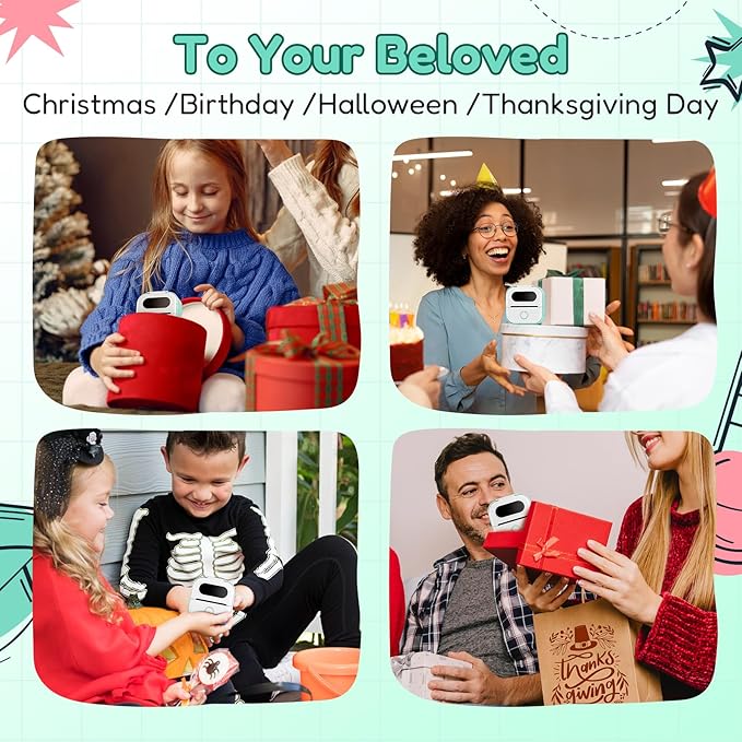 - Custom Label Maker: This small portable printer is suitable for use with family and friends during Halloween, Thanksgiving, birthdays, and other holidays. Also you can DIY design patterns and cut out various shapes to meet your needs