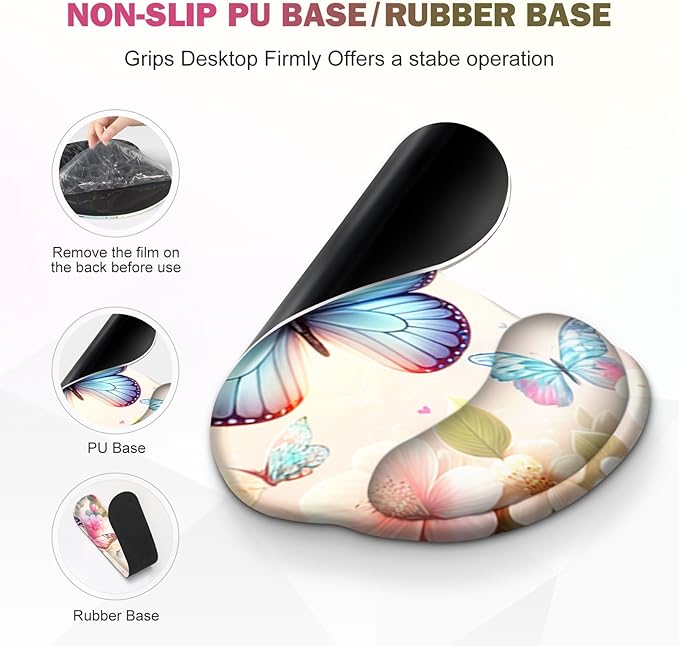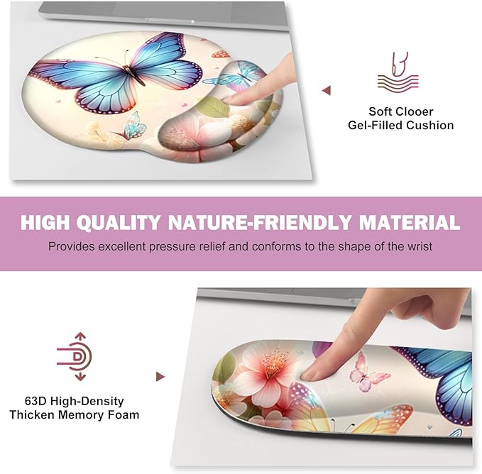 Gaming Mouse Pad, Large Desk Mat, Cute Desk Pad Protector, 4in1 XXL Mousepad + Keyboard Wrist Rest+Mouse Wrist Rest+Coaster Set with Ergonomic Desk Pad for Home Office PC Computer, Butterflies Flowers