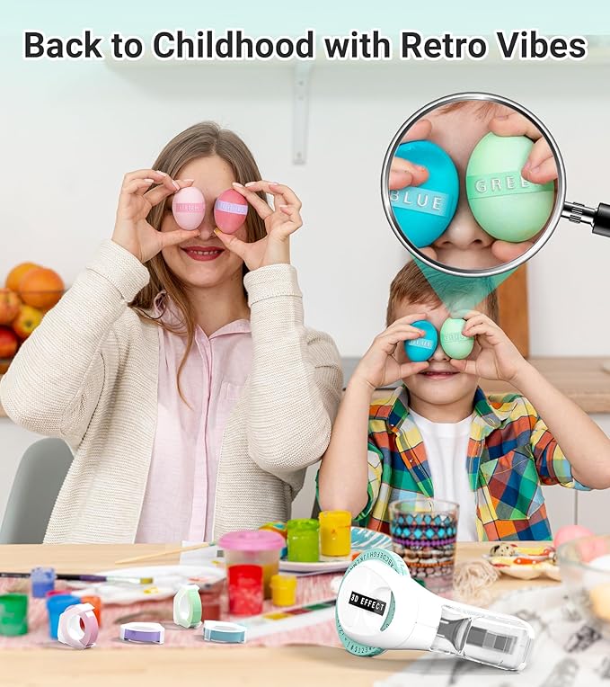 - Easy to Use Label Maker : The EazeID embossing label maker is incredibly user-friendly. This retro embossing label maker machine with tape requires no computer or mobile phone – simply rotate to the desired letter position and manually press to quickly print. It's a versatile tool that's loved by both young and old
