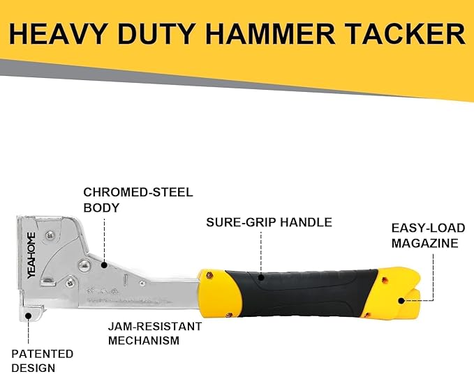 - Durability and Strength: Crafted with high-temperature hardened steel, this heavy duty hammer stapler is built for longevity and can tackle professional-grade tasks. The high-impact head ensures that every strike drives the nail through the material you're working with.