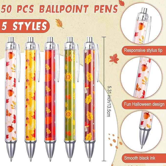 - Thanksgiving Pens Bulk: you will receive 50 Thanksgiving pens in 5 different styles with retractable design, 10 of each style, enough to meet your daily use, Thanksgiving party and classroom prize needs, and you can share with family and friends