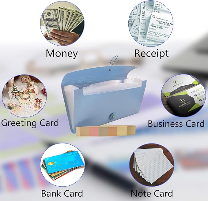 Small Accordion File Organizer - 13 Pocket Expanding Folder for Receipts, Bills, and Envelopes - Money Saving Binder (Blue)