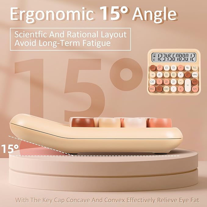 - IMITATION MECHANICAL KEYBOARD: Imitating the knocking feel of a mechanical keyboard (the keyboard cannot be disassembled without special tools), the key operation is fast and accurate, bringing a pleasant experience.. The touch of your fingers and the unique clicking sound are addictive.Large button, candy color.Large LCD screen,12-digit display, vertical back,15-degree angle for easy-to-read calculator