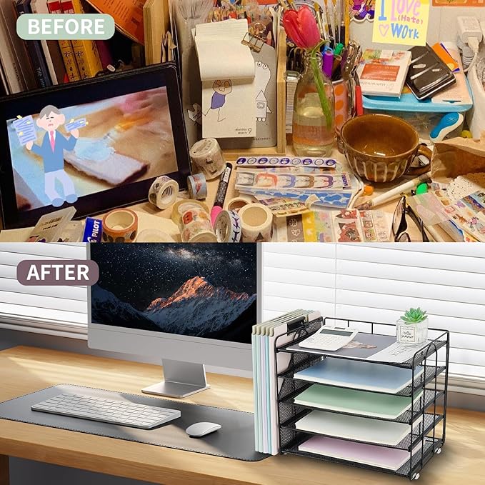 - 【Keep your desk clean】This space-saving paper organizer is the ideal solution for keeping your desk tidy and productive. Whether in an office, college dorm, or school classroom, it’s perfect for anyone needing efficient desk organization or classroom supplies