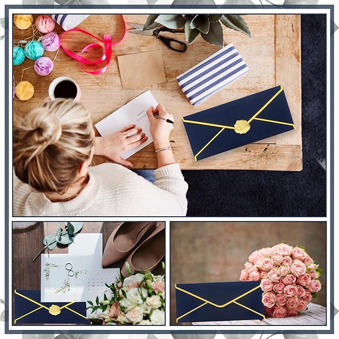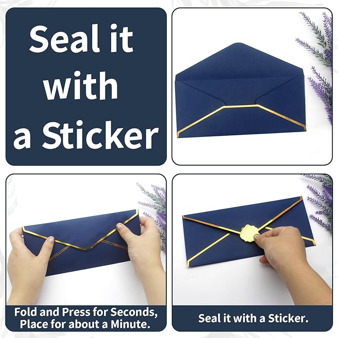 Business Envelopes with V-Flap,Gold Border 30 Pack #10 Envelopes Made of 150gsm Paper, Standard Envelopes with Gold Stickers for Office, Checks, Letter Mailing,9.45 * 4.13 Inches(Navy Blue)