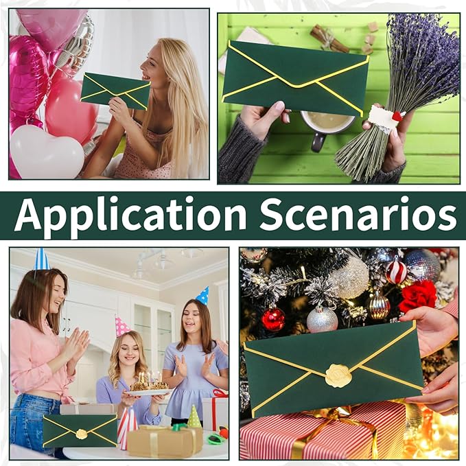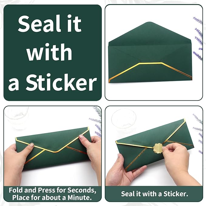 Business Envelopes with V-Flap,Gold Border 30 Pack #10 Envelopes Made of 150gsm Paper, Standard Envelopes with Gold Stickers for Office, Checks, Letter Mailing,9.45 x 4.13 Inches (Deep Green)