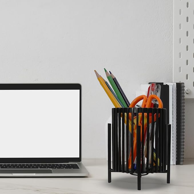 - FUNCTIONABLE FOR STORAGE: The round metal cup measures 3.82" in height and 3.35" in diameter, large enough to hold lots of office stationery, such as pens, pencils, scissors, eraser, rulers etc., keeps everything pretty organized and your desktop tidy