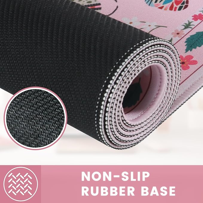 - Non-Slip Rubber Base for Stability: The Cute desk mat is designed with a non-slip rubber base. It stays firmly in place, even during intense use. Enjoy uninterrupted workflow and precise control over your mouse movements