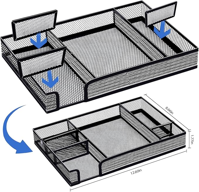 - 【Package Includes】: This black office supplies contains 1x desk drawer organizer , 1x Stapler , 1x Staple Remover, 1000x Staples, 1x Tape Dispenser, 1x Tape, 1x Office Scissor,20x Binder Clips,200x Paper clips, 100x Sticky Note. Such a complete black desk accessories combination can meet your daily office and study needs.
