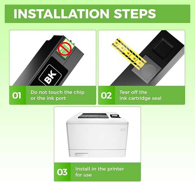 - Latest Chip Version: The KingKJ Ink Cartridges is equipped with the latest built-in chip, ensuring perfect compatibility between each Ink Cartridges and the printer. When using the KingKJ Ink Cartridges to print for your printer, you will receive clear text and sharp images. All KingKJ toner cartridges have undergone strict quality testing to ensure stability and reliability, and have obtained ISO9001 certification. In addition, our product team offers 2-year warranty, 24-hour customer service, and replacement services for defective products.