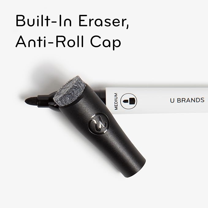 - QUICK CORRECTION CAP: Make corrections a breeze with the built-in felt erasers on the caps that allow for clean erasing without residue; featuring a contoured anti-roll cap shape, which prevents the markers from rolling off any flat surface or tray