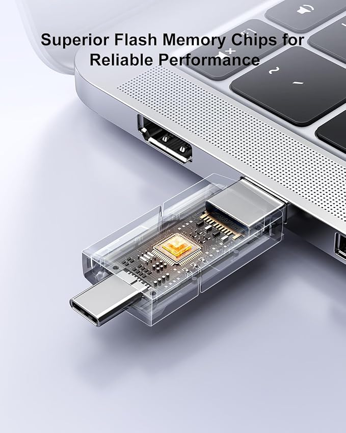 - 2-In-1 Dual Flash Drive: This dual flash drive with USB-A and USB-C ports works with your type-c smartphone, iPhone 15/15 Pro/15 Pro Max, tablet, laptop, Mac, car audio systems, gaming consolesand , etc