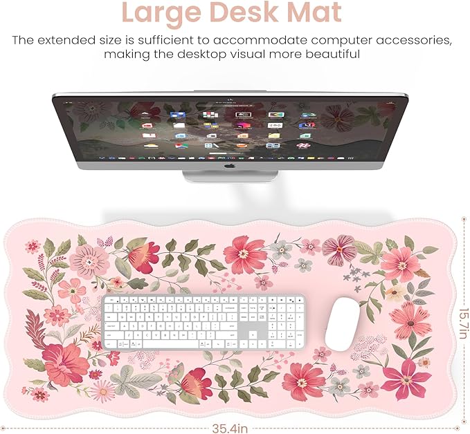 - Generous Size for Organization: At 35.4'' x 15.7'' (900 x 400 mm), the keyboard mat comfortably fits your keyboard, mouse, and more. Its vintage floral design not only keeps your desk tidy but also brings charm and elegance to your setu