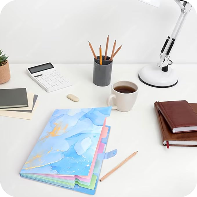 - Organize Your Paperwork Efficiently: Our pocket folder offers a simple solution to keep your documents neatly organized. With 5 pockets, colorful labels, and tabs, you can categorize your paperwork by task or subject, making the location of your documents an effortless task. Organize Your Paperwork Efficiently!