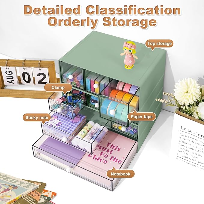 - Elegant & Practical: The classic color scheme and simple rectangular appearance are elegant and suitable for all styles of rooms. Desk Organizer with 9 Drawers keeps your desk clutter-free. Transparent drawers help you quickly find the items you need