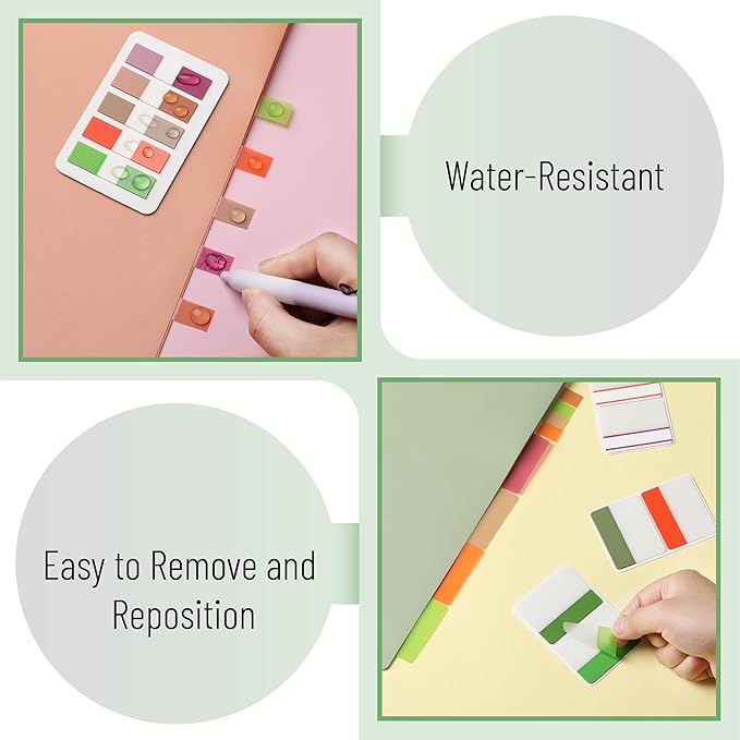 - Made from premium, durable material, these index tabs are designed to be repositionable and stick securely without leaving residue behind, perfect for both short-term and long-term use.