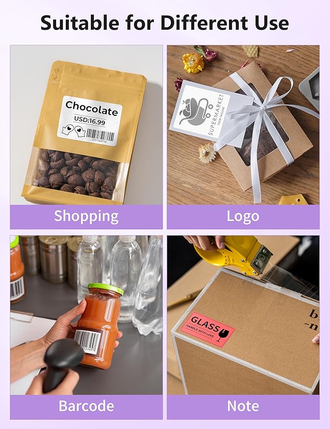 - [Multi-Platform Compatibility] - This shipping label printer supports label widths from 1 to 4.6 inches, making it ideal for printing labels from major platforms like eBay, Shopify, Amazon, Etsy, UPS, USPS, FedEx, and more. Easily print text, barcodes, QR codes, forms, and use pre-made templates for home or business. Note: The printer supports black-and-white printing only. For color labels, purchase compatible thermal color label paper separately.