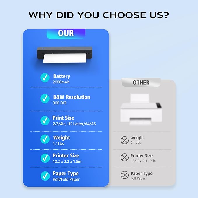 - ✅BATTERY LIFE THAT KEEPS UP WITH YOU:One full charge handles 360 pages – enough to print a 200-page manual plus your weekly meeting notes. The 2000mAh battery lasts through 4 hours of continuous use, though you’ll need to buy thermal paper separately (standard 3.1" width works fine)
