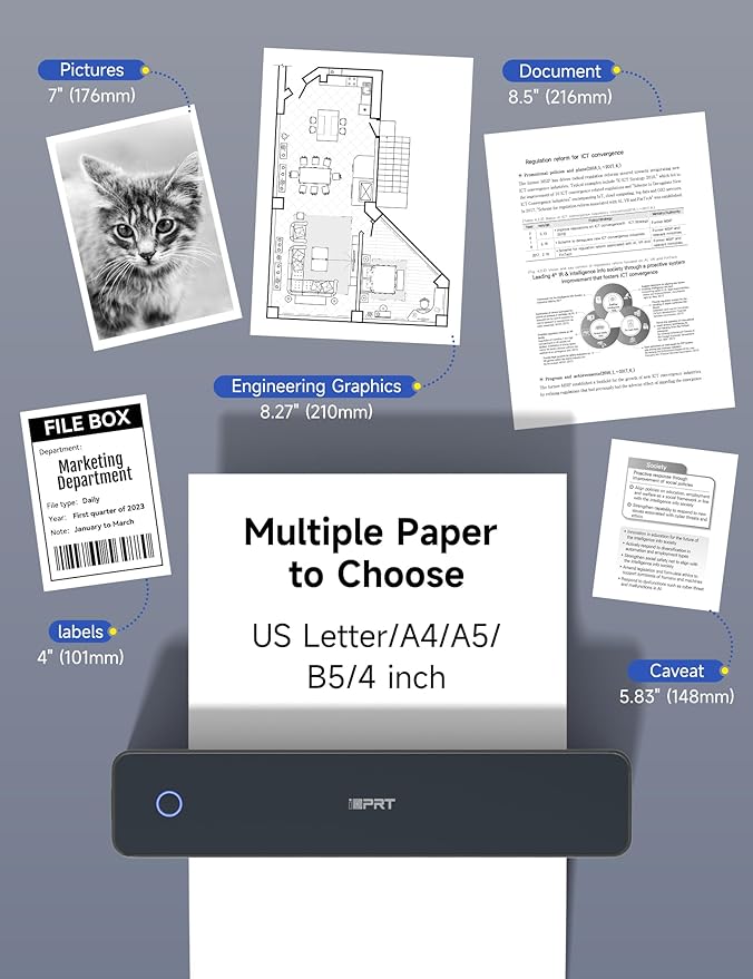 - ✅PRINT ANYWHERE WITHOUT THE INK HASSLE:Say goodbye to messy ink cartridges. This portable printer creates sharp 300DPI documents faster than you can staple papers – we’re talking 4-6 seconds per A4 page. Whether you’re printing contracts at a coffee shop or boarding passes at the airport, it delivers professional results every time(Supports thermal paper only)