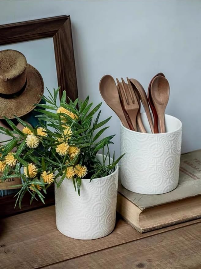 - Stylish & versatile design- With fashion and modern design,white desk organizers and accessories can be compatible well with any decor of your office,home and school.The white embossed desktop organizer is decorated as modest and serene hue on the desktop.The minimalist design of pen holder for desk cute will give you inspiration.