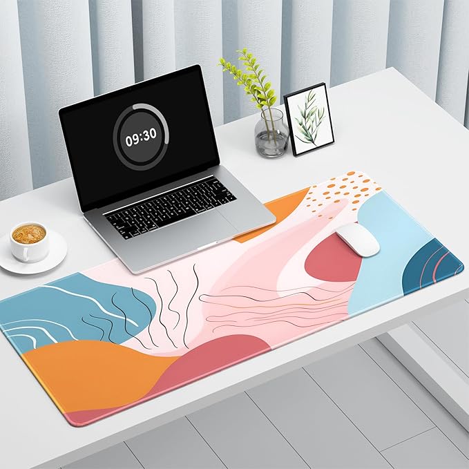 Auhoahsil Desk Mat, Ultra Large Mouse Pad, XXL Gaming Mousepad, Pretty Desk Pad, Big Extended Full Size Desktop Desk Matt for Keyboard, Laptop & Computer, 35.5 x 15.7 in, Abstract Orange Pink Pattern