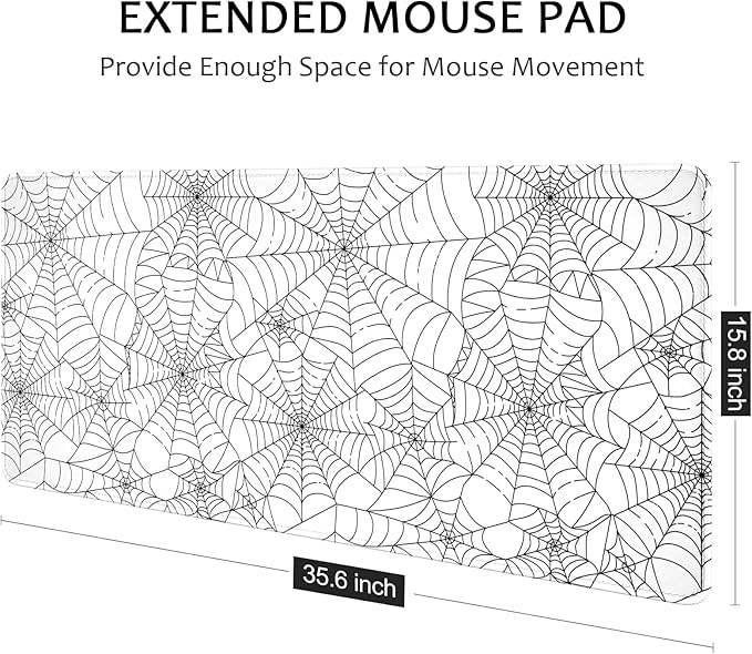 Auhoahsil Desk Mat, Ultra Large Mouse Pad, XXL Gaming Mousepad, Pretty Desk Pad, Big Extended Full Size Desktop Desk Matt for Keyboard, Laptop & Computer, 35.5 x 15.7 in, White Goth Spider Web