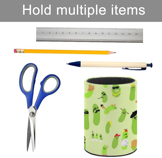 Cute Pickles Pen Holder Pencil Organizer Cute Pencil Cup Desk Decor Makeup Brush Holder PU Multifunctional Office Suppliesfor Home Classroom School