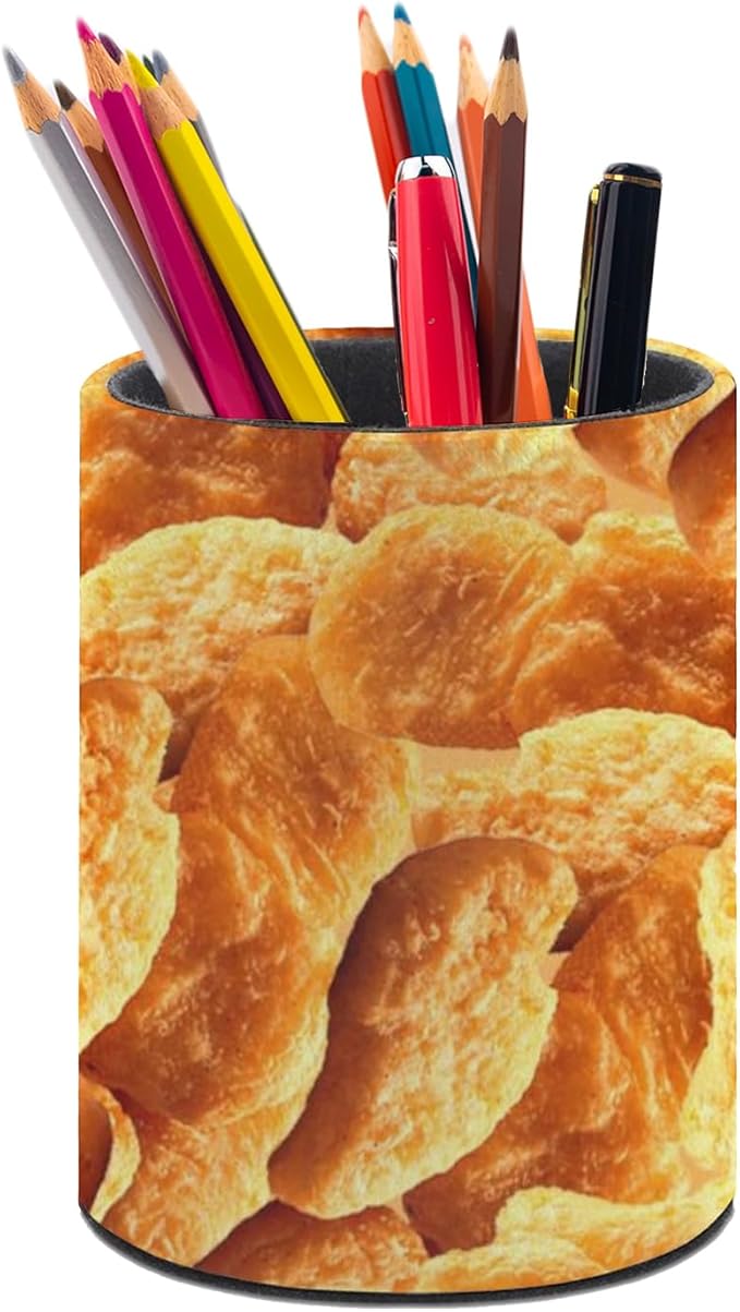 Chicken Nuggets Pen Holder Pencil Organizer Cute Pencil Cup Desk Decor Makeup Brush Holder PU Multifunctional Office Suppliesfor Home Classroom School
