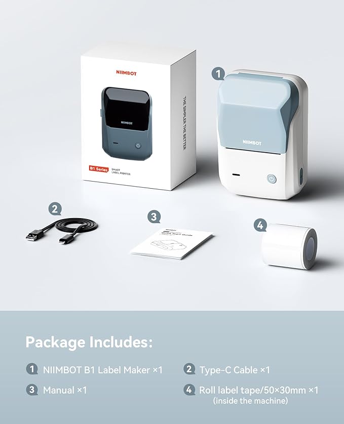 - Easy to Use: The NIIMBOT B1 Bluetooth label maker uses direct thermal printing, so there’s no need for ink or toner. It’s compatible with iOS and Android smartphones but not iPads. To use it, first install the NIIMBOT app from the Apple Store or Google Play, then connect via Bluetooth. For PC connection via USB, you’ll need to download the driver from NIIMBOT’s official website.