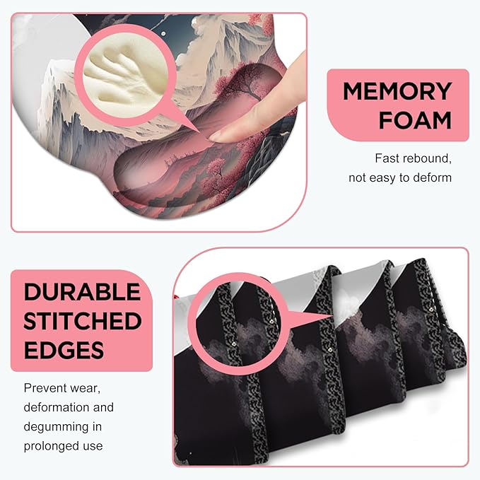 AIMSA Keyboard Mouse Pad Wrist Rest Set, Large Gaming Mouse Desk Pad with Wrist Support Ergonomic Design, 4 in 1 Mousepad for Home Office, Sakura Snow Mountain