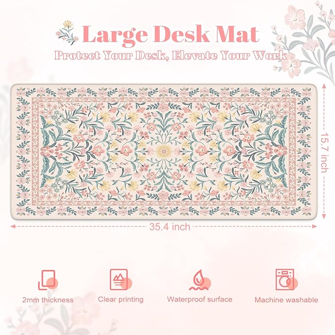- Beautiful Desktop Mat: Aesthetic floral design to brighten desks, offices, or studies. This desk cover mat fit keyboards and mice, maximizing desk space efficiently. Good ideal for friends, family, classmates, and workmates!
