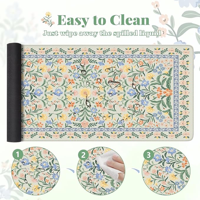- Beautiful Desktop Mat: Aesthetic floral design to brighten desks, offices, or studies. This desk cover mat fit keyboards and mice, maximizing desk space efficiently. Good ideal for friends, family, classmates, and workmates!