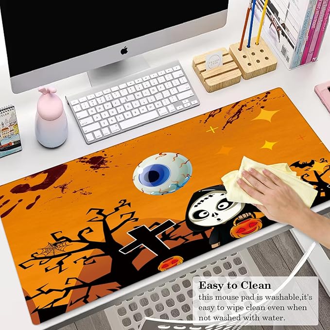 Halloween Desk Pad Protector, Stitched Edges Mouse Pad, Large Office Desk Mat, Non-Slip Desk Blotter, Laptop Desk Pad, Desk Writing Pad for Office and Home (XXL)